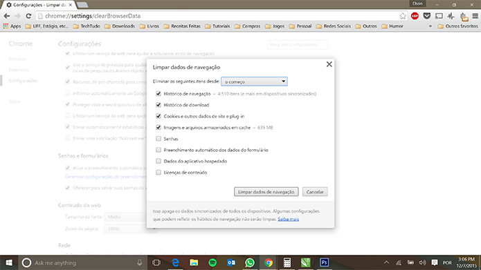 O seu navegador também pode ter culpa em possíveis ataques, já que muitas ferramentas maliciosas fazem uso disso. Portanto, seja usuário do Microsoft Edge, Firefox, Google Chrome, Opera ou Safari, é preciso ter atenção a elementos de navegação como os cookies instalados por sites. Para limpá-los, basta pressionar o atalho “Ctrl+Shift+Del”, ter certeza que os cookies estão marcados e excluir os dados. Confira o tutorial com mais informações.