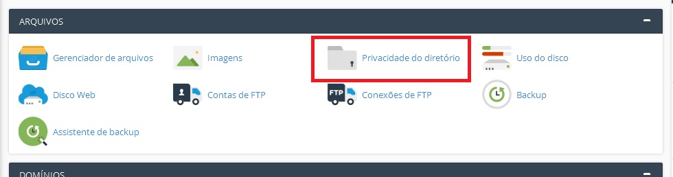 Acesse seu cPanel. Clique no ícone “Privacidade do diretório” ou “Password Protect”.