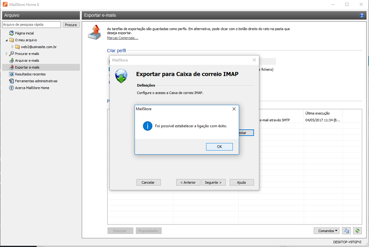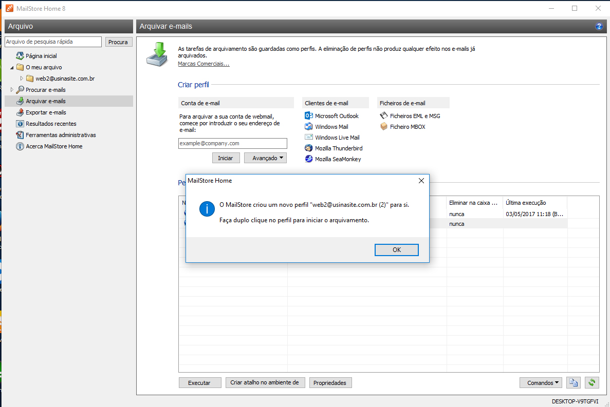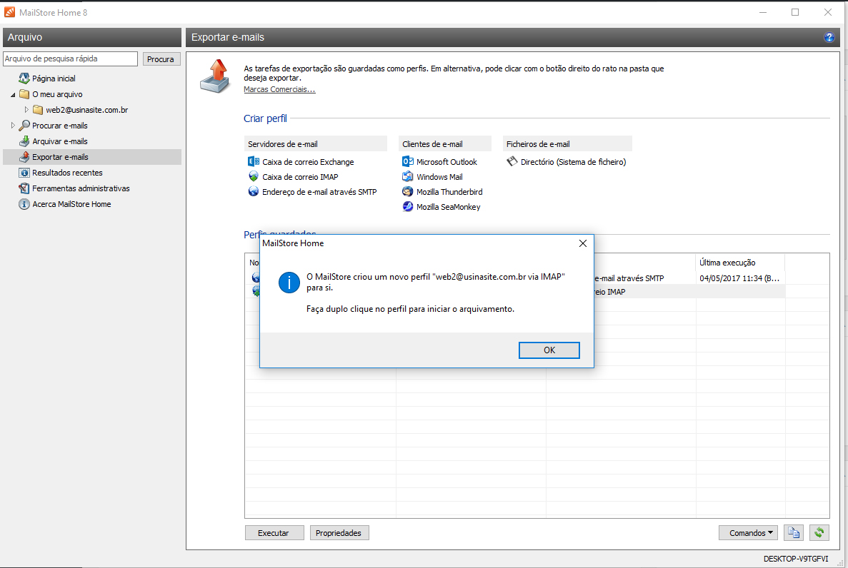 Neste caso, “web2@usinasite.com.br” é um email de exemplo. Clique em OK.