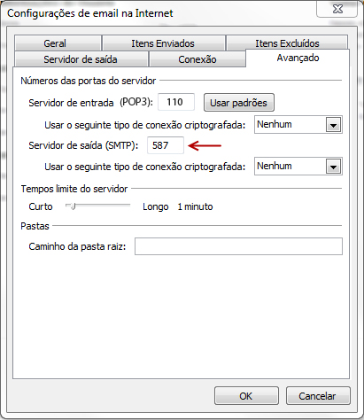 Para finalizar a configuração, clique na aba Avançado e defina 587 como a porta de SMTP em Servidor de saída (SMTP).